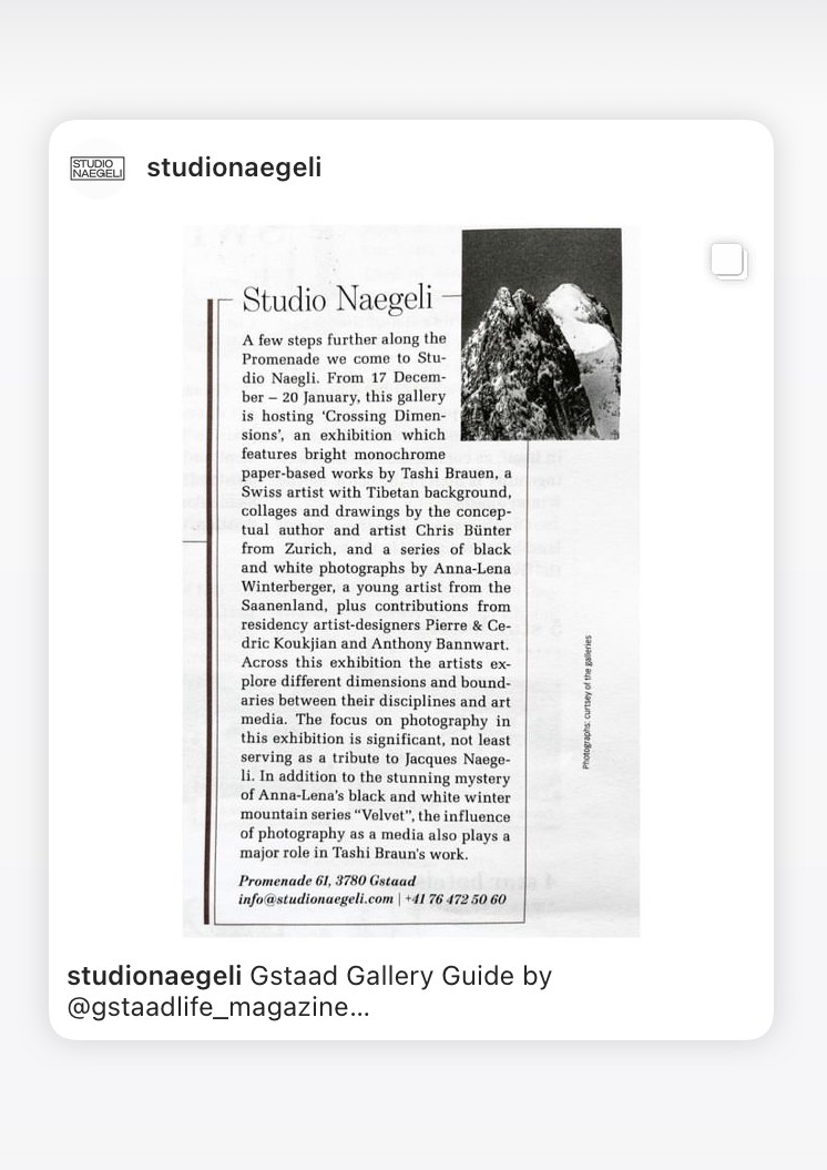 Studio Naegeli, Gallery Archive Residency, Promenade 61, Gstaad, Switzerland.